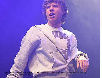 Platz 2: Zartmann – “Tau Mich Auf”: Vor rund einem Jahr als supporteter Act auf einer Single von Ski Aggu bekannt geworden, startet der deutsche Sänger und Rapper Zartmann (am Bild) nun solo durch. Sein Hit „Tau Mich Auf“ beschreibt das Gefühl, emotional eingefroren zu sein – eine Art Schutzmechanismus nach zu vielen Enttäuschungen – und die Begegnung mit einer Person, die diese Mauern durchbrechen könnte. Der Song klingt stark nach Frühling, Sonnenschein und guter Laune. Den gesamten März lang stand Zartmann mit seinem bis dato größten Hit am 2. Rang, d.h. auch im Monatsranking holt der Berliner Musiker Silber (+17).